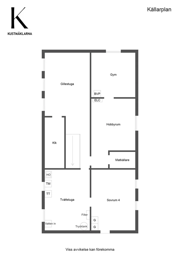 Källaren erbjuder gott om extra ytor – här finns gillestuga, hobbyrum, gym, tvättstuga och förrådsmöjligheter som gör huset flexibelt och funktionellt för olika behov.